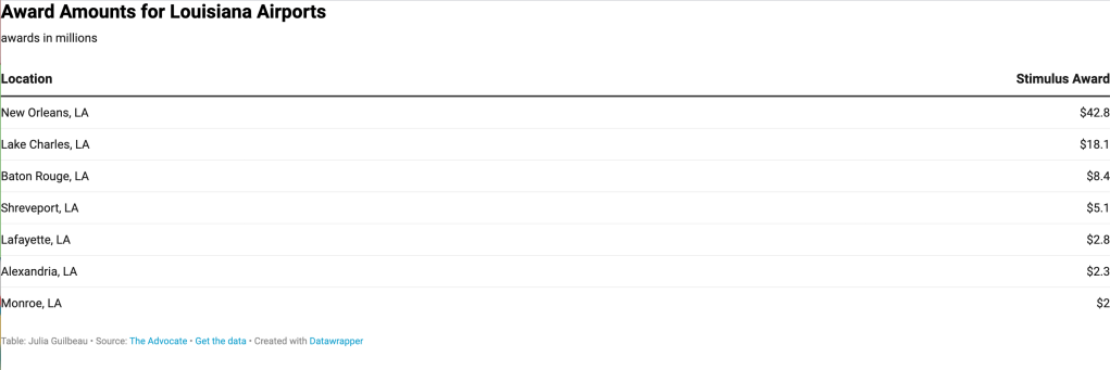 The smallest of the major Louisiana airports, Lake Charles Regional, was awarded $18.1 million according to The Advocate. Meanwhile, other airports such as Lafayette only received $2.8 million.