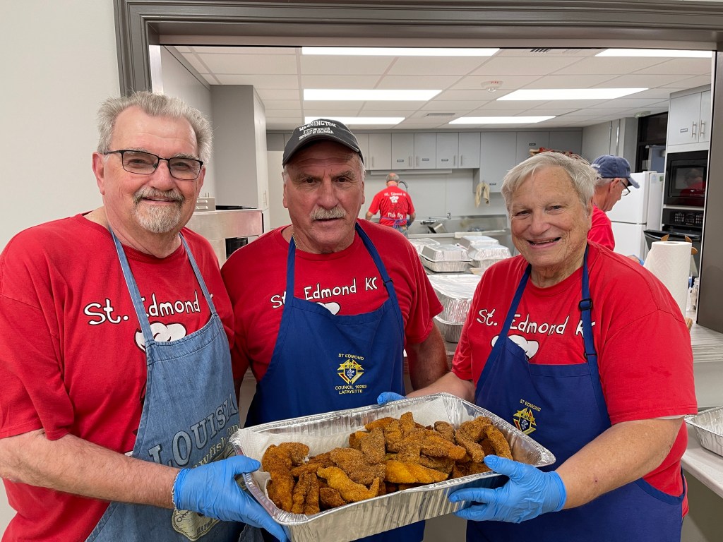 According to figures from catholic-hierarchy.org, 323,568 Catholics comprise the Diocese of Lafayette. Feeding this multitude are local members of the Knights of Columbus. Plates offered by these councils typically cost $10 and include potato salad, coleslaw and fried catfish, with the proceeds donated to charities supported by the organization.